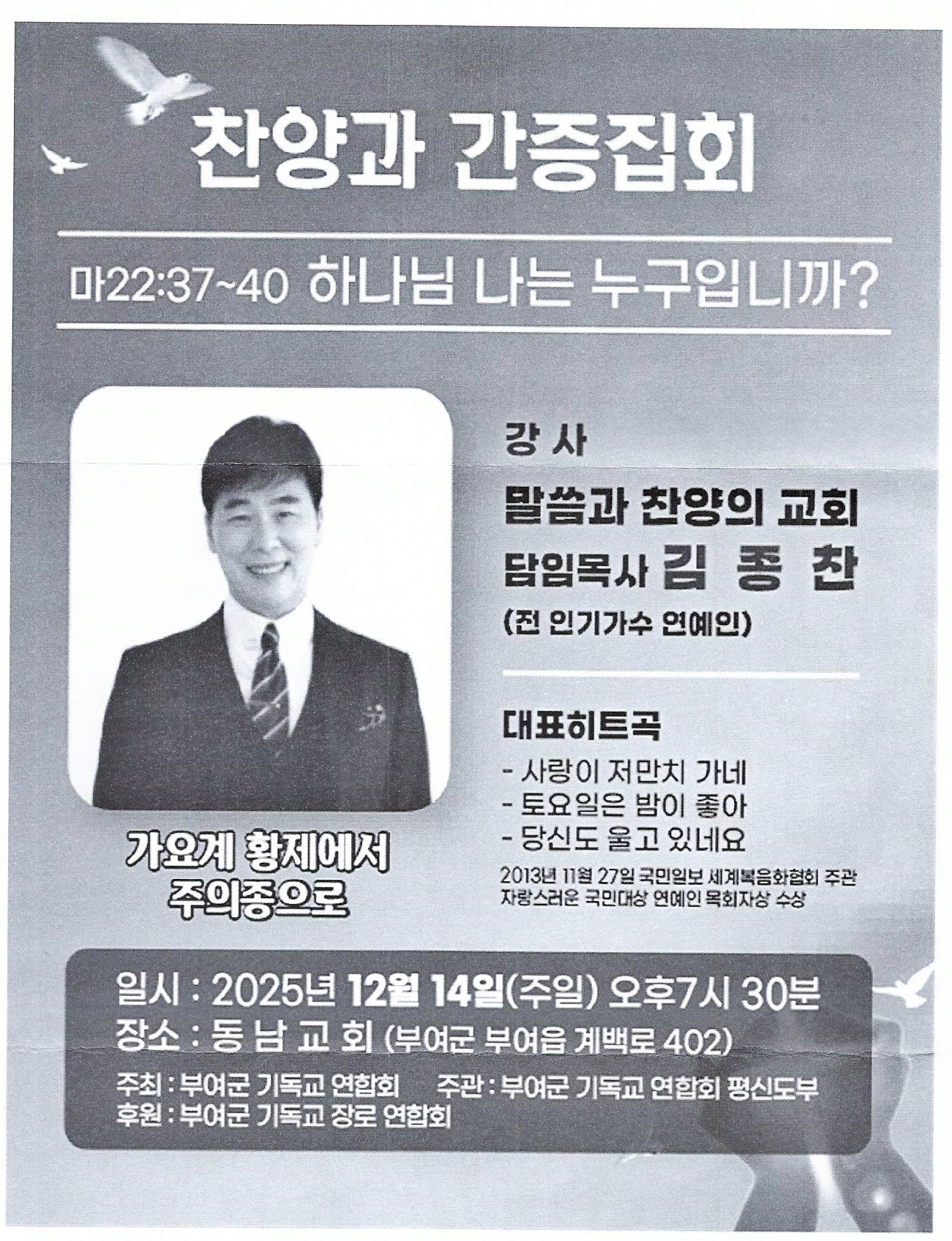 전 인기가수,연예인 김종찬목사 간증집회 본문